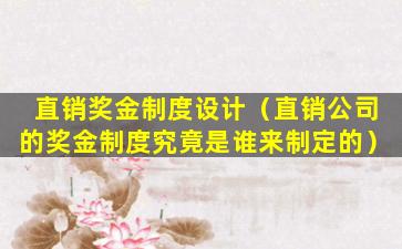 直销奖金制度设计(直销公司的奖金制度究竟是谁来制定的)