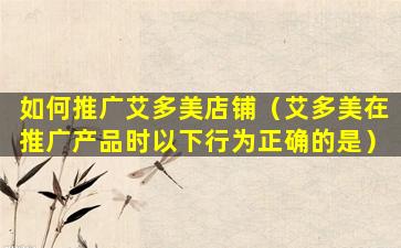 如何推广艾多美店铺(艾多美在推广产品时以下行为正确的是)