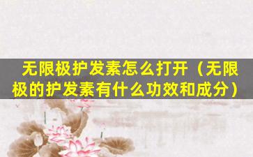 无限极护发素怎么打开(无限极的护发素有什么功效和成分)