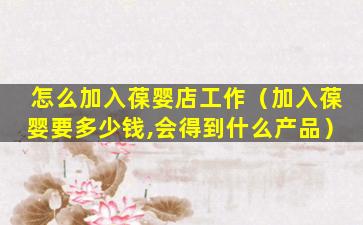 1、怎么加入葆婴店工作