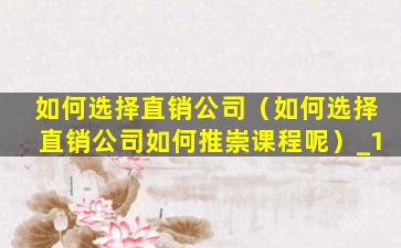 如何选择直销公司(如何选择直销公司如何推崇课程呢)