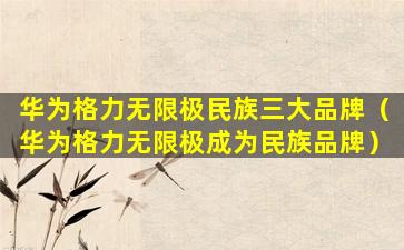 华为格力无限极民族三大品牌(华为格力无限极成为民族品牌)