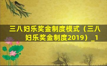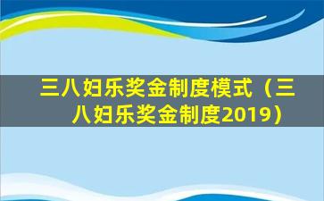 三八妇乐奖金制度模式(三八妇乐奖金制度2019)
