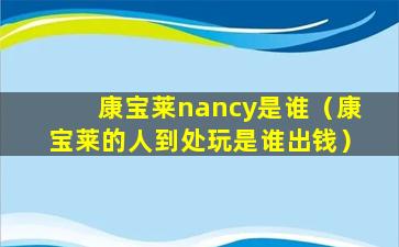 康宝莱nancy是谁(康宝莱的人到处玩是谁出钱)