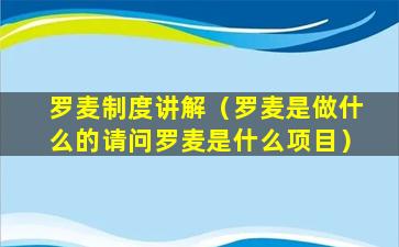 罗麦制度讲解(罗麦是做什么的请问罗麦是什么项目)