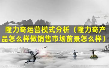 2、隆力奇产品怎么样做销售市场前景怎么样