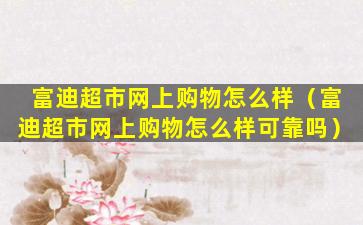 富迪超市网上购物怎么样(富迪超市网上购物怎么样可靠吗)