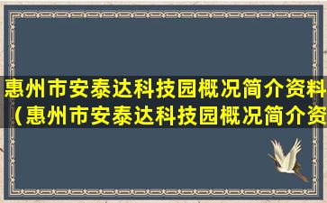 惠州市安泰达科技园概况简介资料(惠州市安泰达科技园概况简介资料电话)