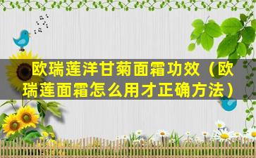 欧瑞莲洋甘菊面霜功效(欧瑞莲面霜怎么用才正确方法)