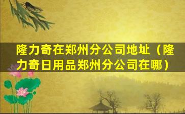 隆力奇在郑州分公司地址(隆力奇日用品郑州分公司在哪)