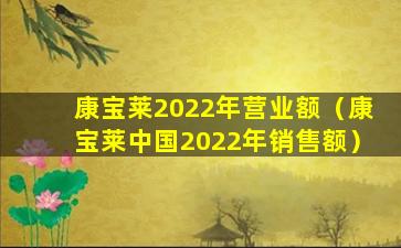 康宝莱2022年营业额(康宝莱中国2022年销售额)