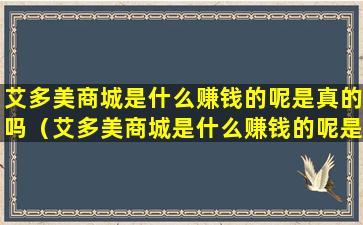 艾多美商城是什么赚钱的呢是真的吗(艾多美商城是什么赚钱的呢是真的吗还是假的)