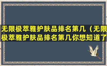 无限极萃雅护肤品排名第几(无限极萃雅护肤品排名第几你想知道了!)