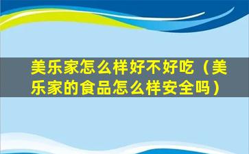 美乐家怎么样好不好吃(美乐家的食品怎么样安全吗)