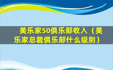 美乐家50俱乐部收入(美乐家总裁俱乐部什么级别)