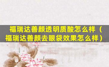 福瑞达善颜透明质酸怎么样(福瑞达善颜去眼袋效果怎么样)