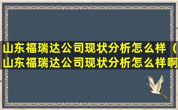 山东福瑞达公司现状分析怎么样(山东福瑞达公司现状分析怎么样啊)