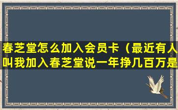 春芝堂怎么加入会员卡(最近有人叫我加入春芝堂说一年挣几百万是真的吗)