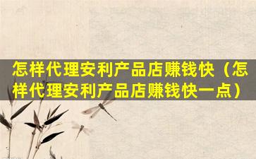 怎样代理安利产品店赚钱快(怎样代理安利产品店赚钱快一点)
