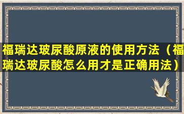福瑞达玻尿酸原液的使用方法(福瑞达玻尿酸怎么用才是正确用法)