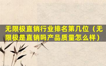 无限极直销行业排名第几位(无限极是直销吗产品质量怎么样)