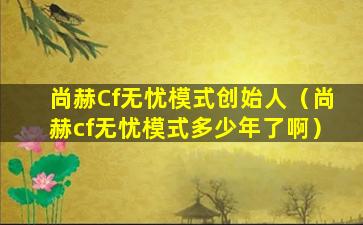尚赫Cf无忧模式创始人(尚赫cf无忧模式多少年了啊)