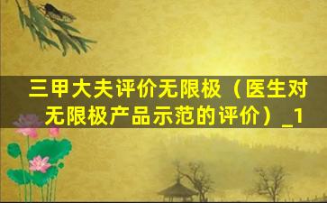 三甲大夫评价无限极(医生对无限极产品示范的评价)