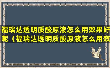 福瑞达透明质酸原液怎么用效果好呢(福瑞达透明质酸原液怎么用效果好呢女性)