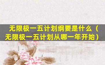 无限极一五计划纲要是什么(无限极一五计划从哪一年开始)