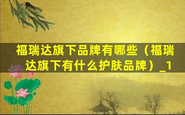 2、福瑞达旗下有什么护肤品牌