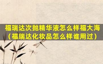 福瑞达次抛精华液怎么样福大海(福瑞达化妆品怎么样谁用过)