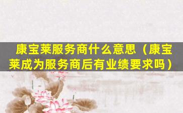 康宝莱服务商什么意思(康宝莱成为服务商后有业绩要求吗)
