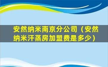 安然纳米南京分公司(安然纳米汗蒸房加盟费是多少)