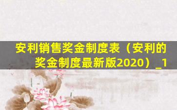 安利销售奖金制度表(安利的奖金制度最新版2020)