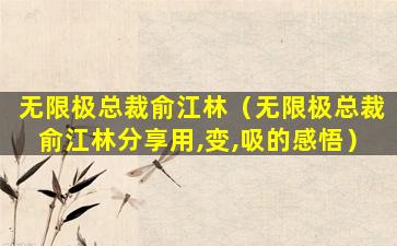 无限极总裁俞江林(无限极总裁俞江林分享用,变,吸的感悟)