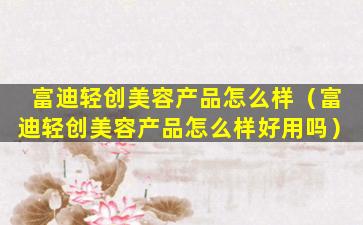富迪轻创美容产品怎么样(富迪轻创美容产品怎么样好用吗)