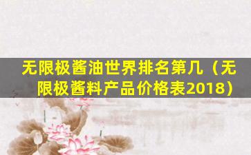 无限极酱油世界排名第几(无限极酱料产品价格表2018)