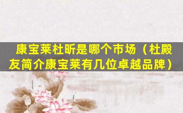 康宝莱杜昕是哪个市场(杜殿友简介康宝莱有几位卓越品牌)