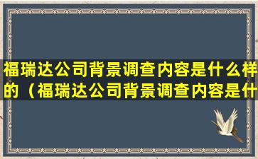福瑞达公司背景调查内容是什么样的(福瑞达公司背景调查内容是什么样的啊)