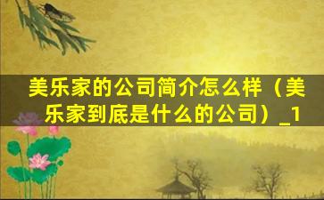 美乐家的公司简介怎么样(美乐家到底是什么的公司)