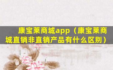 康宝莱商城app(康宝莱商城直销非直销产品有什么区别)