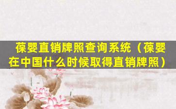 葆婴直销牌照查询系统(葆婴在中国什么时候取得直销牌照)