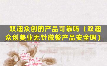 双迪众创的产品可靠吗(双迪众创美业无针微整产品安全吗)