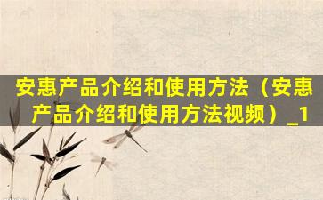 安惠产品介绍和使用方法(安惠产品介绍和使用方法视频)