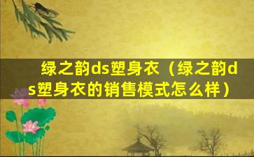 绿之韵ds塑身衣(绿之韵ds塑身衣的销售模式怎么样)