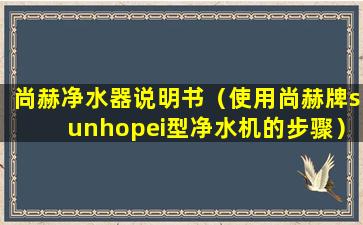 尚赫净水器说明书(使用尚赫牌sunhope i型净水机的步骤)