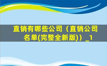 直销是一种销售模式,公司直接向顾客销售产品,通常通过独立经销商。在中国,有许多直销公司,提供各种各样的产品和服务。