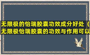 无限极怡瑞胶囊是来自无限极集团的一款保健品,其成分天然,健康益处显著。