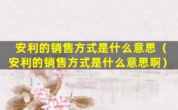 安利的销售方式是什么意思(安利的销售方式是什么意思啊)