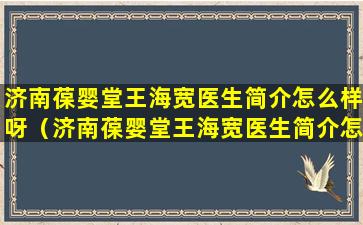 济南葆婴堂王海宽医生简介怎么样呀(济南葆婴堂王海宽医生简介怎么样呀知乎)